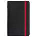 Black Soft Cover Notebook, Wide/Legal Rule, Black Cover, 5.5 x 3.5, 71 Sheets. The classic features you need with the durable styling you want. Crisp, high-white 90GSM Optik Paper™ for clear notes on both sides of the page. Rear expanding pocket for handy storage. Individually numbered pages with space for the date in the header. Personal Information and Contents page in the front for easy identification. Red bungee closure. Book/Pad Binding Type: Sewn; Book/Pad Binding Edge: Side; Book/Pad Sheet Size: 5.5 x 3.5; Book/Pad Subjects/Sections: 1.