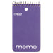 Wirebound Memo Pad with Wall-Hanger Eyelet, Medium/College Rule, Randomly Assorted Cover Colors, 60 White 3 x 5 Sheets. Wirebound memo book for both professional and academic needs. Cardboard cover and black wire. Ideal for meeting and lecture notes. Design subject to change. One-hole punched at top for hanging. Book/Pad Binding Type: Wirebound; Book/Pad Binding Edge: Top; Book/Pad Sheet Size: 3 x 5; Book/Pad Subjects/Sections: 1.