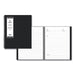 Aligned Business Notebook, 1 Subject, Meeting Notes Format, Narrow Rule, Black Cover, 11 x 8.5, 78 Sheets. This Aligned™ Business Notebook offers 156 notes pages. Restore balance and help clarify your goals with clean layouts and simplified design, featuring areas to mark specific topics, action items and agenda details against blank notes on the back. Easily mark down details and enjoy premium durability for everyday wear and tear with heavyweight PAJCO® cover material that feels like leather. Enjoy this classic, professional color palette with touches of silver foil. A matching black wire binds this book for a sophisticated look. Book/Pad Binding Type: Wirebound; Book/Pad Binding Edge: Side; Book/Pad Sheet Size: 11 x 8.5; Book/Pad Subjects/Sections: 1.
