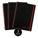 Twinwire Semi-Rigid Notebook Plus Pack, Wide/Legal Rule, Black, 8.25 x 5.88, 70 Sheets, 3/Pack. Depend on a classic business notebook for your professional notetaking needs. Black n’ Red business notebook is a reliable choice for your important notes. Smooth and crisp Optik Paper is bright white and reduces ink bleed, allowing you to write on both sides of the page. Business notebook includes 70 double sided 8 1/4" x 5 7/8" sheets, for a total of 140 note-taking pages. Page corners are tagged for SCRIBZEE. The app scans and saves your notebook pages to the cloud so you can easily edit, organize and share. Download SCRIBZEE for free. Black, flexible, poly covers provide durable protection with professional style. Red twin wire binding adds a bold accent, and can fold back or lie flat for one or two page viewing. Sheets are perforated for clean and easy removal. Notebook has a bungee closure to keep pages securely in place. Three Notebooks for One Low Price. Book/Pad Binding Type: Doubled Spiral Wire; Book/Pad Binding Edge: Side; Book/Pad Sheet Size: 8.25 x 5.88; Book/Pad Subjects/Sections: 1.Premium bright white Optik Paper reduces ink bleed.The ability to write on both sides of every page maximizes usable space.Business notebook includes 70 double sided 8 1/4" x 5 7/8" sheets, for a total of 140 note-taking pages.Sheets are perforated for clean and easy removal.Page corners are tagged for SCRIBZEE.The free app scans and saves your notebook pages to the cloud so you can easily edit, organize and share.Black, flexible, poly covers provide durable protection with professional style.Red twin wire binding adds a bold accent.Notebook can fold back or lie flat to offer a one or two page.Features a bungee closure to keep pages secure.