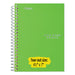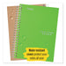 Wirebound Notebook, 1 Subject, Medium/College Rule, Green Cover, 11 x 8.5, 100 Sheets. Durable, water-resistant poly covers protect your notes all year. Reinforced, tear-resistant divider pockets keep your loose sheets together. Spiral Lock® wire binding prevents coil snag, and high-quality paper provides excellent ink-bleed resistance. Easily inserts into any three-ring binder (sold separately). Side-Bound One-Subject—Two pockets. Book/Pad Binding Type: Wirebound; Book/Pad Binding Edge: Side; Book/Pad Sheet Size: 11 x 8.5; Book/Pad Subjects/Sections: 1.