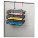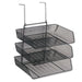 Mesh Partition Additions Three-Tray Organizer, 11 1/8 x 14 x 14 3/4, Black. Triple tray with three 2” capacity side-load trays organizes papers and files. Mounts to partition walls 1 ½”-3” wide without tools to save space. Product is 100% recyclable. Includes hardware for mounting to drywall. Contemporary mesh and wire design. Panel Accessory Type: Organizer; Width: 11 1/8"; Depth: 14"; Height: 14 3/4"; 17 3/8".