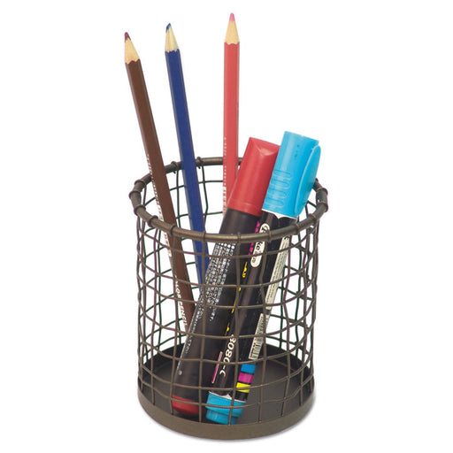 Vintage Wire Mesh Pencil Cup, 3 3/8"dia x 4 1/2"h, Vintage Bronze