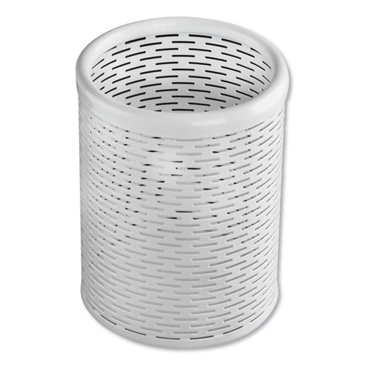 Urban Collection Punched Metal Pencil Cup/Cell Phone Stand, Perforated Steel, 3.5 x 3.5, White