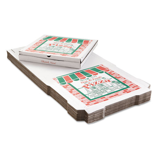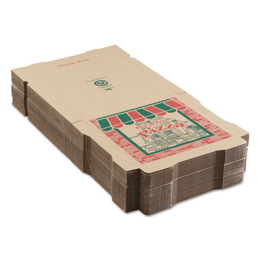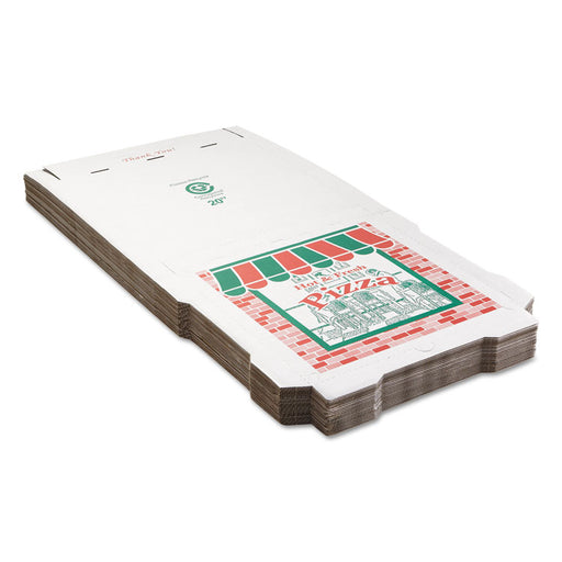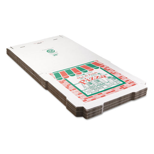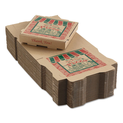 • Corrugated StoreFront Pizza Boxes, Kraft, 20 x 20, White/Red/Green, 25/Carton
