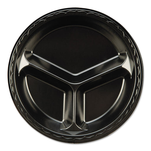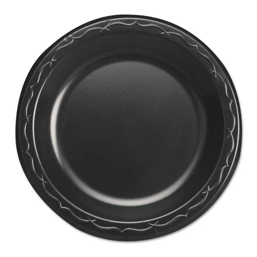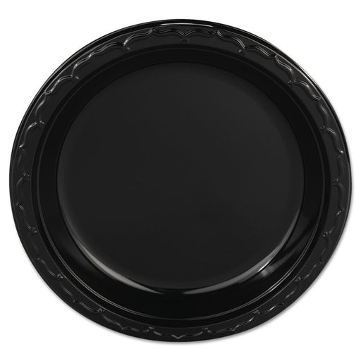 Versatile plastic plates are sturdy and durable. Dinnerware Type: Plate; Material(s): Plastic; Shape: Round; Diameter: 10 1/4".