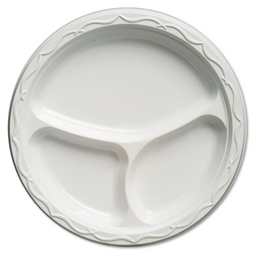 Strong and durable with a stylish white finish. Ideal for occasions when extra strength is required. Three Compartment Plate. Dinnerware Type: Plat...