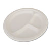 ChampWare Heavyweight Bagasse Dinnerware, Plate, 3-Compartment, 10" dia, White, 500/CartonBagasse, a fibrous renewable resource by-product of the sugarcane refining process.