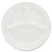 Plastic Plates, 9 Inches, White, 3 Compartments, Round, 125/Pack