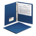 2-Pocket Folder w/Tang Fastener, Letter, 1/2" Cap, Dark Blue, 25/Box. Large pockets safely hold documents while keeping the material accessible. Tang strip securely holds punched documents. Left pocket is die-cut for business card. Fasteners hold up to 80 sheets of paper. Textured stock is super-durable. This product was made using wood sourced from a certified managed forest. Front Cover Color(s): Dark Blue; Color Family: Blue; Back Cover Color(s): Dark Blue; Sheet Size: 11 x 8 1/2.