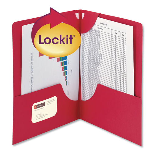 Unique top Lockit® flap folds over to prevent documents from falling out. Two 4" high pockets hold up to 50 sheets each. 11-pt. laminated stock wit...