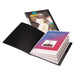 ShowFile Display Book with Custom Cover Pocket, 24 Letter-Size Sleeves, Black. Slim, trim book features clear, sheet-protector-style pages bound into durable covers for two-sided display and protection. Durable, acid-free, transfer-safe polypropylene will not lift ink from pages and is safe for photographs. Easy to use, FREE templates in your favorite software are available online. Customize covers for presentation handouts or to title reference books. Clear overlay on front cover. 1" wide label area on spine. Number of Sleeves: 24; Front Cover Color(s): Black; Back Cover Color(s): Black; Sheet Size: 11 x 8.5.