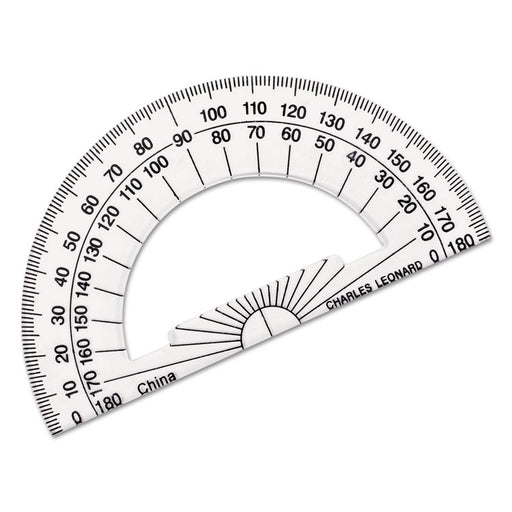 Clear plastic protractor is ideal for all young mathematicians. Sharply defined graduations allow students to easily identify angles ranging from 1...