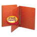 Prong Fastener Premium Pressboard Report Cover, Two-Piece Prong Fastener, 3" Capacity, 8.5 x 11, Red/Red. Two-piece-style cover with matching tear resistant hinge compresses material tightly to reduce bulk. Durable Press Guard® material is coated to resist moisture and stains. Designed to hold securely without damaging the document or binder hinge. Embossed title panel on front cover. This product was made using wood sourced from a certified managed forest. Side Opening - Holes 8 1/2" c. to c. Front Cover Color(s): Red; Color Family: Red; Back Cover Color(s): Red; Sheet Size: 8.5 x 11.