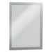 DURAFRAME Sign Holder, 8.5 x 11, Silver Frame, 2/Pack. Self-adhering display sign with hinged magnetic front lets you create professional looking signage/displays quickly and easily. Adheres to any smooth and solid surface. Simply peel, stick and you're done. Sturdy cover lifts effortlessly, allowing for speedy insert updates. Magnetic seal holds inserts securely in place. Can be read from both sides when affixed to transparent surfaces, such as glass. Frame looks identical from both sides. Can be used in both portrait and landscape formats. Frame Color: Silver; Size: 8.5 x 11; Insert Size: 8.5 x 11; Material(s): PVC.