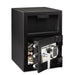Digital Depository Safe, Extra Large, 1.3 cu ft, 14w x 15.6d x 24h, Black. Reduce your chance of being robbed by making frequent deposits in your drop safe container. Designed with a host of security features including hardened steel lock plate, programmable electronic locks, anti-fish hoppers and anti-pry doors. Bolt-down included. Extra Large. Outer Width: 14"; Outer Depth: 15.6"; Outer Height: 24"; Capacity (text): 1.3 cu ft.