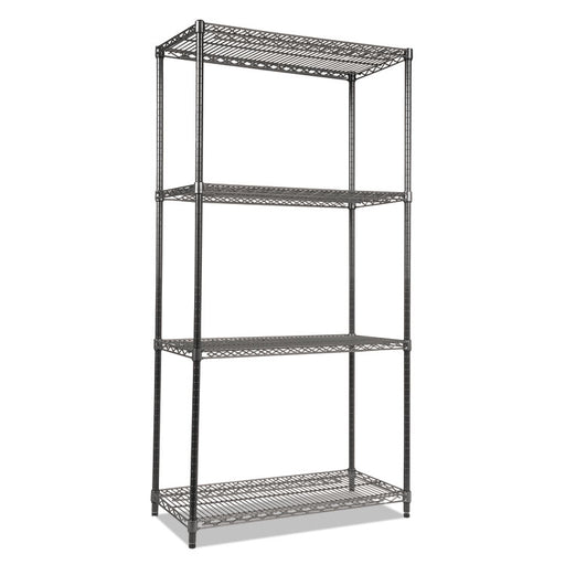 Wire Shelving Starter Kit, Four-Shelf, 36w x 18d x 72h, Black Anthracite