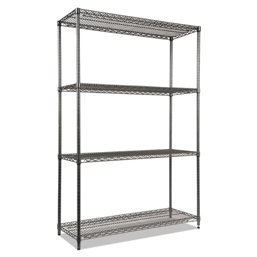 Wire Shelving Starter Kit, Four-Shelf, 48w x 18d x 72h, Black Anthracite