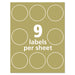 Round Brown Kraft Print-to-the-Edge Labels, 2.5" dia, 225/PK. Kraft brown round labels are ideal for branding and promotional applications. Print-to-the-edge feature allows you to extend colors right to the edge of the label to get a customized look. Permanent adhesive tightly bonds to paper, cardboard, corrugated materials and more. In short, these labels are guaranteed to stick and stay. Easy to customize with free templates and designs using Avery Design & Print. Recyclable and made entirely of recycled materials. 8.5" x 11" sheets for laser and inkjet printers. Shape: Round; Label Size - text: 2.5" dia.; Label Color(s): Kraft Brown; Color Family: Brown.
