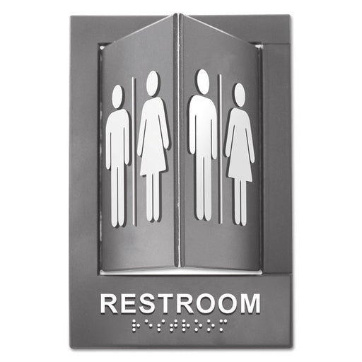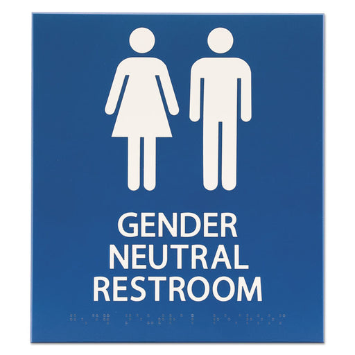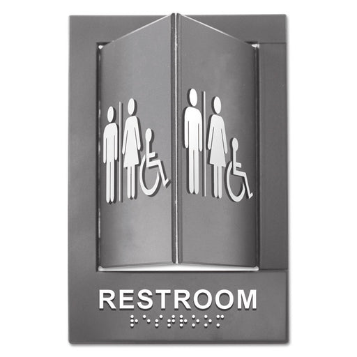 This restroom sign makes it easy to find any and all handicap-accessible gender neutral restrooms within a building or facility. Easy-to-read contr...