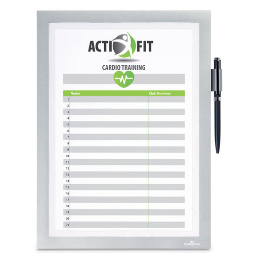 The self-adhesive infoframe with pen holder is the ideal solution for direct writing on documents and notices. Quick insertion and exchange of docu...