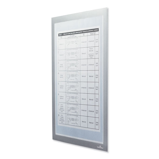 Magnetic infoframe displays documents on metallic surfaces in production area and offices, such as whiteboards, metal cabinets, racking and machine...