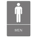 ADA Sign, Men Restroom Symbol w/Tactile Graphic, Molded Plastic, 6 x 9, Gray