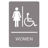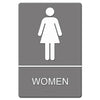 ADA Sign, Women Restroom Symbol w/Tactile Graphic, Molded Plastic, 6 x 9, GrayEasy-to-see white graphic.