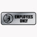 Brushed Metal Office Sign, Employees Only, 9 x 3, Silver