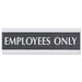 Century Series Office Sign, EMPLOYEES ONLY, 9 x 3, Black/Silver