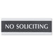 Century Series Office Sign, NO SOLICITING, 9 x 3, Black/Silver