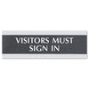 Century Series Office Sign, VISITORS MUST SIGN IN, 9 x 3, Black/Silver