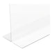 Classic Image Double-Sided Sign Holder, 11 x 8 1/2 Insert, Clear. Light-duty freestanding plastic T-frame sign holder lets you display signs where you need them most. Two-sided for double the impact. Use on counter or desk. Create professional looking signs in seconds from your own office with Deflecto's free online Sign Creator; no software download required. Customizable templates are available on the manufacturer's website. Classic Image®—Loads from the bottom. Frame Color: Clear; Size: 11 x 3.5 x 8.5; Message(s): Customizable; Insert Size: 11 x 8.5.