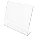 Classic Image Slanted Sign Holder, Landscaped, 11 x 8.5 Insert, Clear. Value priced light-duty freestanding durable plastic L-frame holder lets you display signs where you need them most. Slanted face for easier readability. Create professional looking signs in seconds from your own office and Deflecto's free online Sign Creator software; no software download required. Customizable templates are available on the manufacturer's website. Classic Image®—Literature slides in from the side. Frame Color: Clear; Size: 11.13" x 2.63" x 8.44"; Message(s): Customizable; Insert Size: 11 x 8.5.