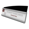 Interior Image Anti-Glare Sign Holder, Landscape, 10 3/8 x 7 5/8 Insert, BK/SR. Cost-effective, versatile facility sign features a durable, distinctive design with silver and black accents. Anti-glare sheet protector keeps inserts clean and easy to read. Create professional looking signs in seconds from your own office using deflecto®'s free online SignCreator™ software—no download required. Mounting hardware included. Frame Color: Silver/Black; Size: 10 3/8" x 3 7/16" x 9 7/16"; Message(s): Customizable; Insert Size: 10 3/8 x 7 5/8.