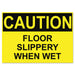 OSHA Safety Signs, CAUTION SLIPPERY WHEN WET, Yellow/Black, 10 x 14