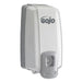 NXT Lotion Soap Dispenser, 1,000 mL, 5 x 10 x 3.88, Dove Gray. Compact soap or lotion dispenser. Compatible with GOJO® NXT® SPACE SAVER™ 1000 mL refills. Mounts to wall with included adhesive tape or optional hardware. Multiple hole pattern allows use of existing wall holes. Dispenser Type: For Lotion; Capacity (Volume): 1000 mL; Mounting: Wall; Material(s): Plastic.