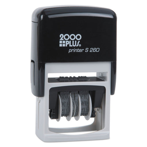 Combine a word and date to make a real impression. Four-band date; months, days and five-year band. Plastic frame. Includes cartridge-style two-col...