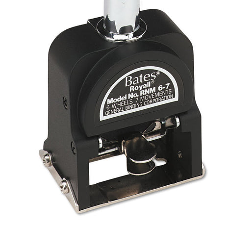 Six-wheel numbering machine features automatic advancement of number digits. Repeat, consecutive, duplicate, triplicate and quadruple numbering. In...