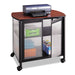 Impromptu Deluxe Machine Stand w/Doors, 34.75w x 25.5d x 30.75h, Black/Cherry. Machine stand to meet user needs in private office, collaboration space, print area or meeting room. Silver powder coat steel frame for durability with translucent polycarbonate side and back panels. Laminate top accommodates most office machines. Large storage area with one fixed shelf behind two translucent hinged doors. Convenient cord management. Four casters (two locking) for easy mobility. Color: Black/Cherry; Color Family: Cherry; Caster/Glide/Wheel: Four 2 1/2" Casters (2 Locking); Material(s): Laminated; Polycarbonate; Steel.