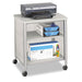 Impromptu Machine Stand, One-Shelf, 26.25w x 21d x 26.5h, Gray. Use Machine Stand to free up additonal desk space and keep supplies close and organized. Powder coat steel frame for durability with translucent polycarbonate side and back panels. Accommodates most office machines. Large storage area with one fixed shelf. Four casters (two locking) for easy mobility. Desk Side—Convenient cord management. Color: Gray; Color Family: Gray; Capacity (Weight): 100 lbs; Caster/Glide/Wheel: Four 2.5" Casters (2 Locking).