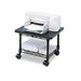 Underdesk Printer/Fax Stand, One-Shelf, 19w x 16d x 13.5h, Black. Large surface (19"w x 16"d) provides ample space for most printers and fax machines. Sturdy steel wire shelf is ideal for storing extra paper or supplies. Fits under most work surfaces to save valuable floor space. Powder coat finish for durability and mobile on four casters (two locking). Easy assembly, no tools required. Color: Black; Color Family: Black; Caster/Glide/Wheel: Four Casters (2 Locking); Material(s): Laminated; Steel.