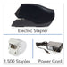 Desktop Cartridge Electric Stapler with LED Guide, 25-Sheet Capacity, Black. High performance electric stapler uses a staple cartridge to deliver 5000 staples without the need to reload. Staples up to 25 sheets at once. Compact and efficient design fits any workspace. Precision Operation—LED Guide illuminates the spot where the staple will be inserted. High Capacity Stapling: No; Flat Clinch Plate: Yes; Tacking: No; Staple Capacity: Cartridge (1,500 Staples).