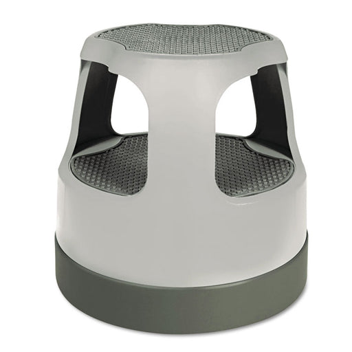 Scooter Stool, Round, 2-Step, 15", Step and Lock Wheels, 300 lb Capacity, Gray