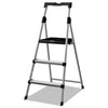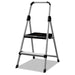 Aluminum Step Stool Ladder, 2-Step, 225 lb Capacity, 18.5w x 23.5 spread x 38.5h, Silver. Folding step stool with large working platform. Light-weight aluminum. Slip-resistant treads and foot pads. Two-Step. Number of Steps: 2; Step Stools Type: Folding Step Stool; Working Height: 96"; Frame Material: Aluminum.