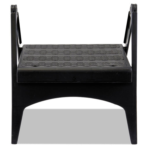 Folding step stool with easy flip-open operation when you need it, folds flat for convenient storage when not in use. The non-slip rubber tread pro...