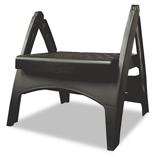 This Quik-Fold step stool has an arched foot guide for safety and is rated to hold 300 lbs. It has an 8” standard step height and super-grip step t...