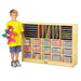Sectional Mobile Cubbie, No Trays, 48w x 15d x 35-1/2h, Birch. Cubbie features KYDZ Strong® construction, KYDZ Safe® edges and KYDZ Tuff® finish. Comes with hardboard recessed back. Cubbie holes are 8¾" wide x 14" deep x 5½" high. Color: Birch; Overall Width: 48"; Overall Depth: 15"; Overall Height: 35 1/2".