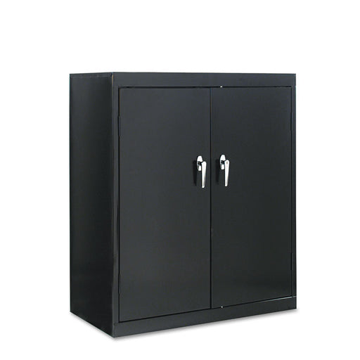Assembled storage cabinet with three-point locking bar system locks top, bottom and doors. Doors open 180° for easy access to contents. Cabinet mad...
