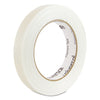 120# Utility Grade Filament Tape, 3" Core, 48 mm x 54.8 m, Clear. An economical, fiberglass reinforced, polypropylene film combined with an aggressive ‘solvent-less’ pressure-sensitive adhesive provides excellent adhesion to corrugated cartons and outstanding holding power. Designed for the majority of packaging, palletizing and unitizing applications. Grade: Medium-Duty; Core Size: 3"; Dispenser Included: No; Adhesive Material: Synthetic Rubber.